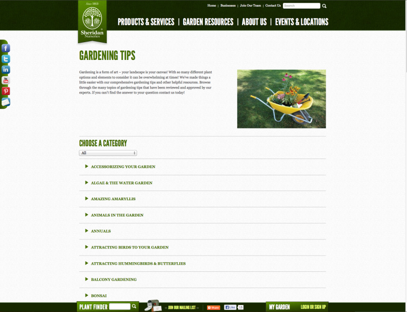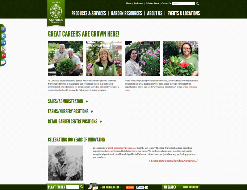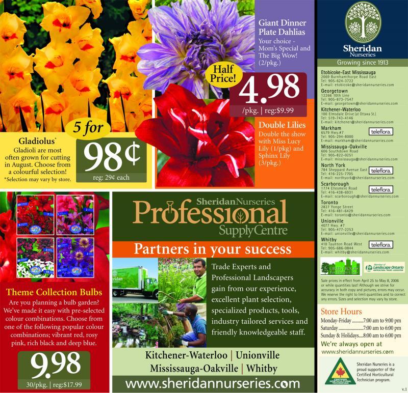 Since 1913, Sheridan's valued guests have made us a favourite destination for both the novice and the more advanced gardener and home decor enthusiast. With eight retail locations in the GTA and one in Kitchener-Waterloo, you will find a pleasant shopping experience with friendly staff, various services to help you create your dream garden and many unique giftware items and plants to suit your style through every season. With over 980 acres of land, we currently produce over 600 perennial varieties, and more than 800 hardy nursery stock varieties giving you farm fresh product all season!